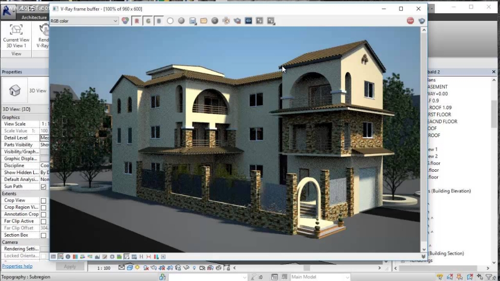 Vật liệu và màu sắc là một trong những vấn đề quan trọng khi thiết kế kiến trúc. Revit Architecture giúp chúng ta nghiên cứu về Texture (bề mặt của vật liệu) và màu sắc rất tốt. Sau khi đồng ý rồi, thì mới xuất qua 3D Max để render.